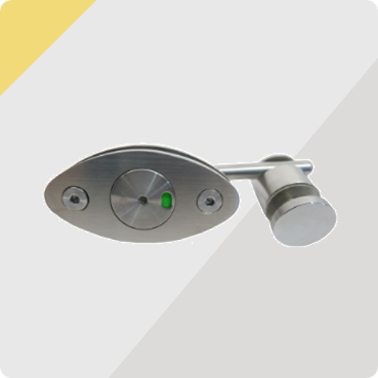 Grendel indikator kunci yang bisa dipasang pada kaca kamar mandi untuk menampilkan indikator hijau dan merah sebagai penanda apakah ada orang / tidak.