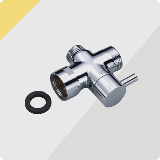 Konektor dari stainles steel untuk menyambung dan dipasang diatas sekat kaca sebagai penyambung pipa dari 3 arah berbeda pada sekat kubikal bentuk T.