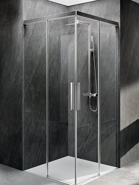 Sesuai dengan namanya, model square corner diaplikasikan pada sudut ruang kamar mandi dengan ukuran minimalis dan transparan yang lebih menonjolkan sisi fungsionalitasnya.